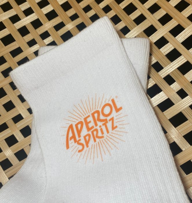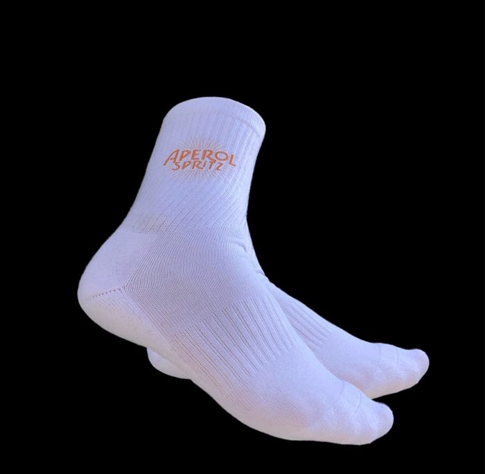 These beautiful Aperol Spritz socks are made by me with a lot of love and care. These colorful and eye-catching socks are printed with the typical Aperol Spritz design and will quickly become a real eye-catcher in any look. The socks are made of high quality materials and are comfortable to wear, perfect for everyday use or as a gift for any Aperol lover. If you are looking for a unique accessory to complete your look, then the Aperol Spritz socks are for you!