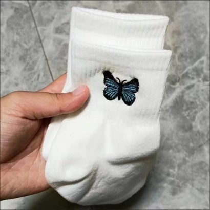 Blue embroidered butterfly cartoon cotton white socks