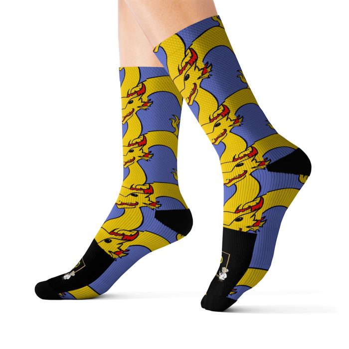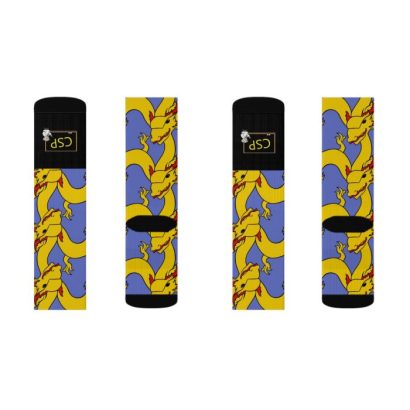 Introducing our printed socks featuring the unique designs that we created! We use patterns, images, and graphics to create a truly personalized pair of socks that showcase your individual style.Our socks are made from high-quality materials, including polyester, and spandex, which provide both comfort and durability. The printing process we use ensures that your designs are vibrant, detailed, and long-lasting, so you can enjoy your custom socks for years to come.A perfect fit for any foot size. Not only are our printed socks perfect for showing off your unique style, but they’re also great for special events or a special gift for someone you care about.Our socks are easy to care for and maintain, so you can wear them as often as you like. Simply toss them in the washing machine and dryer, and they’ll be ready to wear again in no time.Order our custom printed socks today and experience the perfect combination of style, comfort, and personalization. Show off your creativity and individuality with a pair of socks that are truly eye openers. Printed with flat sublimation method. colour discrepancy my be see in seams. 3 different sizes