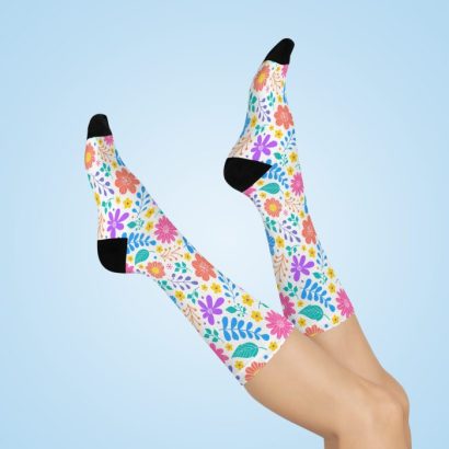 These cushioned DTG crew socks are a one-size style designed with both function and appearance in mind. With the fully cushioned heel-to-toe, these socks provide superior comfort, while the DTG print process allows for ultra-crisp, crease-free printing. Composed of 73% polyester, 18% nylon, 6% spandex, and 3% cotton, these socks are an elevated alternative to the typical sublimation sock and provide a clean, comfortable base for your all-over print designs.