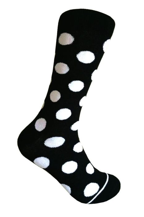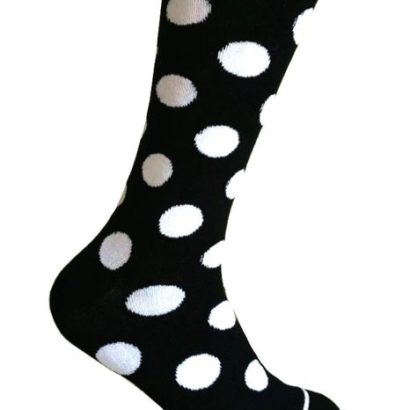 Black With White Polka Dots Dress Socks, Great for Groomsman and Party Event. Nice Gift for Birthday and Holiday. They’re can be wear in multi-occasion, One Size Fit Most(men’s size 9-13). They’re made by combed cotton and polyester and spandex, the raw materials ratios is 78:20:2, the features are comfortable and breathable and elasticity and machine washable.