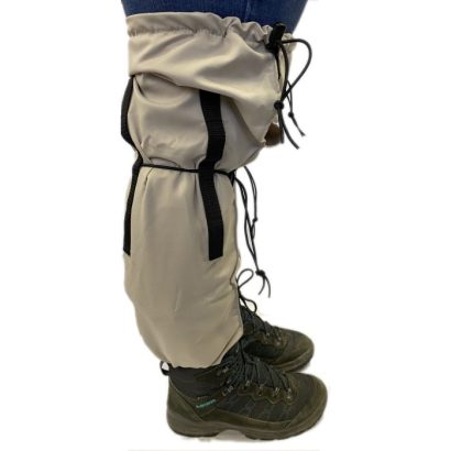 Purple Turtle Leech Socks should be worn like a second pair of socks inside your boots and they pull right up over your trousers and above your knees. They can then be secured with a toggle and elastic draw cord both above and below your knees, thereby creating a continuous leech proof barrier.