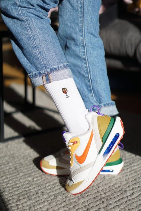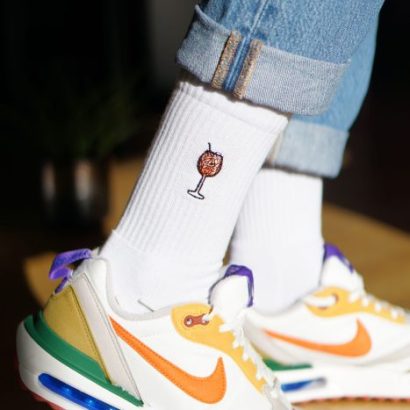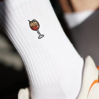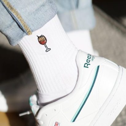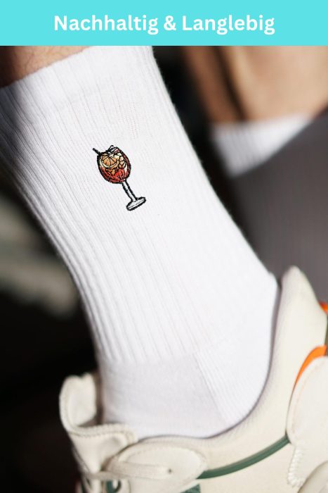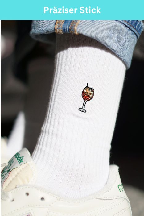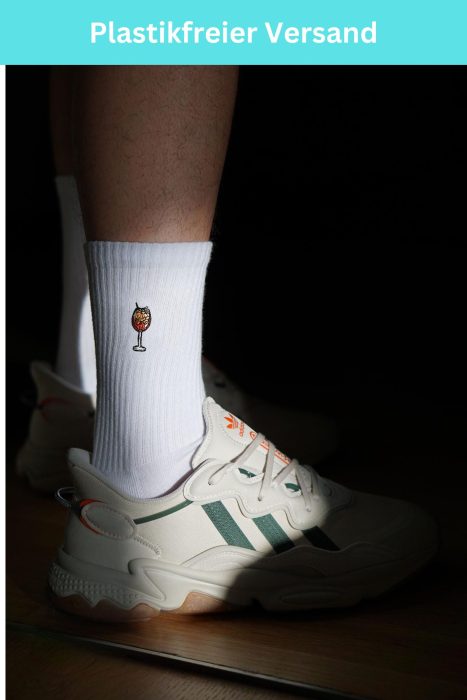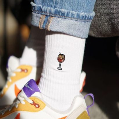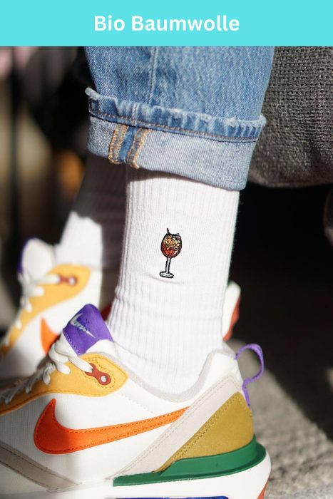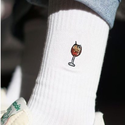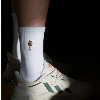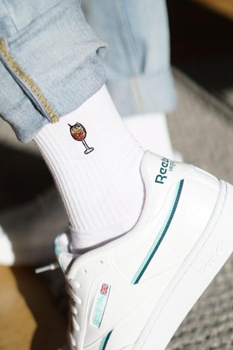 Super high quality organic cotton crew socks with embroidered spritz design
