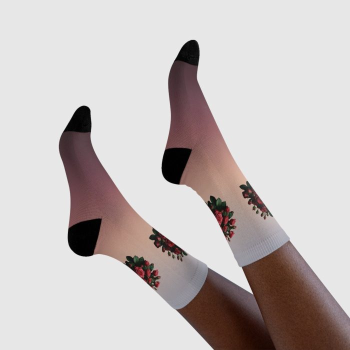 These sublimation crew socks take your designs to the next level. They are made of 70% polyester for easy customization and stretchiness, 25% cotton for extra softness, and the remaining 5% is elastane used at the world for a cozy fit. Their polyester exterior and cotton interior are added for both superb comfort and printability. Sublimation socks are known for their vibrant sublimation colors and have a great amount of stretch as well as durable print quality.